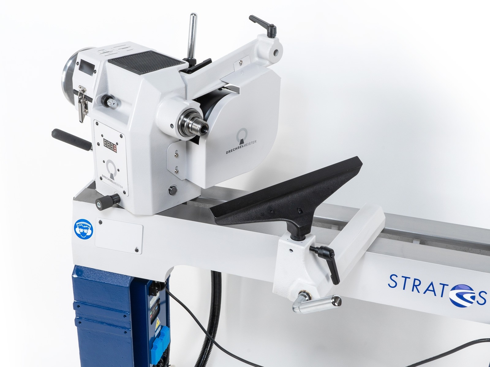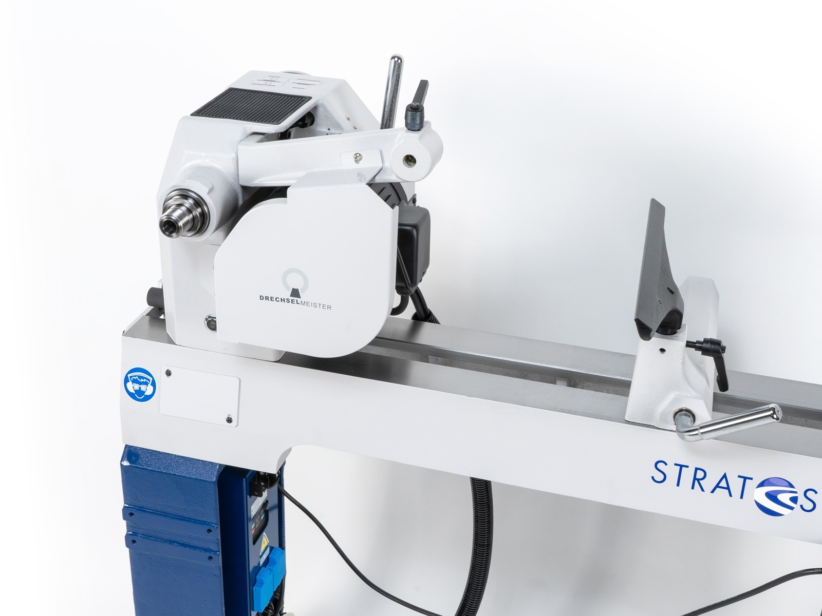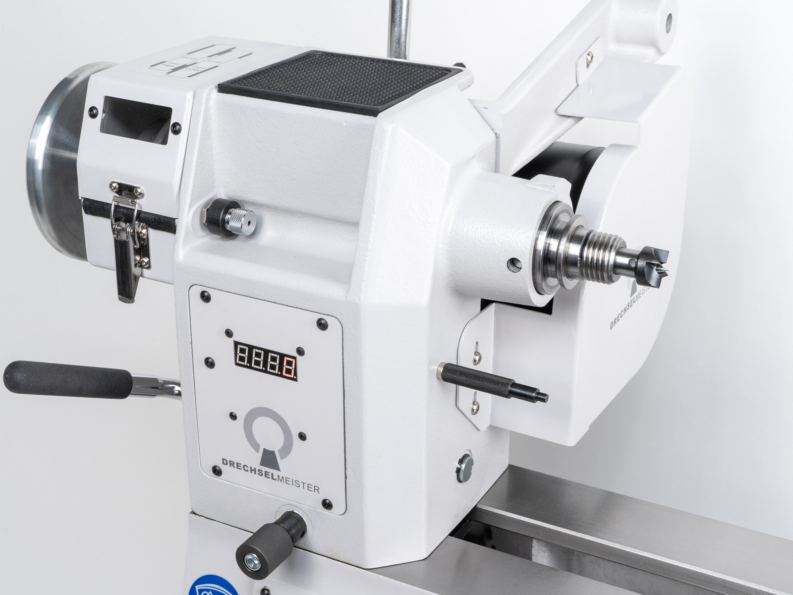 - La poupée principale a été depuis peu équipée d'un système de double serrage. La poupée peut être fixée aux points de base et ailleurs sur le banc grâce à une pince à levier. Elle est doublement sécurisée.