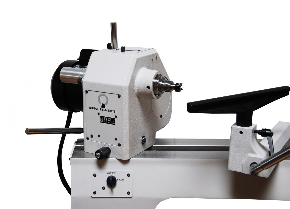 - Le tour est équipé d'un bloc de commande magnétique avec affichage numérique de la vitesse, laquelle est également indiquée sur la poupée principale : l'ensemble apporte ainsi plus de confort lors du tournage.