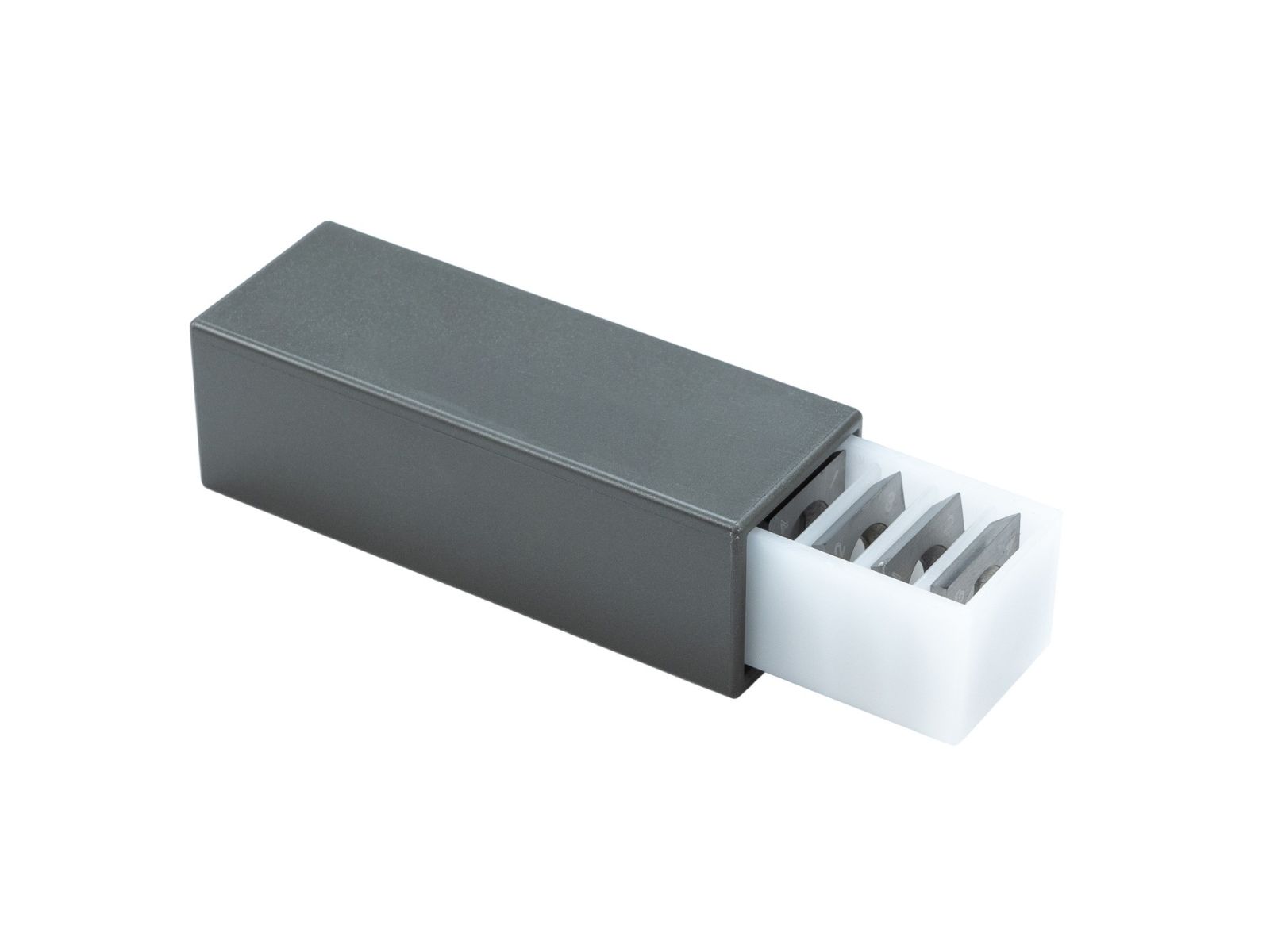 - Constituées en acier carbure, et avec 4 côtés de coupe, chaque plaquette possède une durée de vie bien plus importante que des fers et peuvent usiner facilement tous types de bois durs, y compris exotiques !